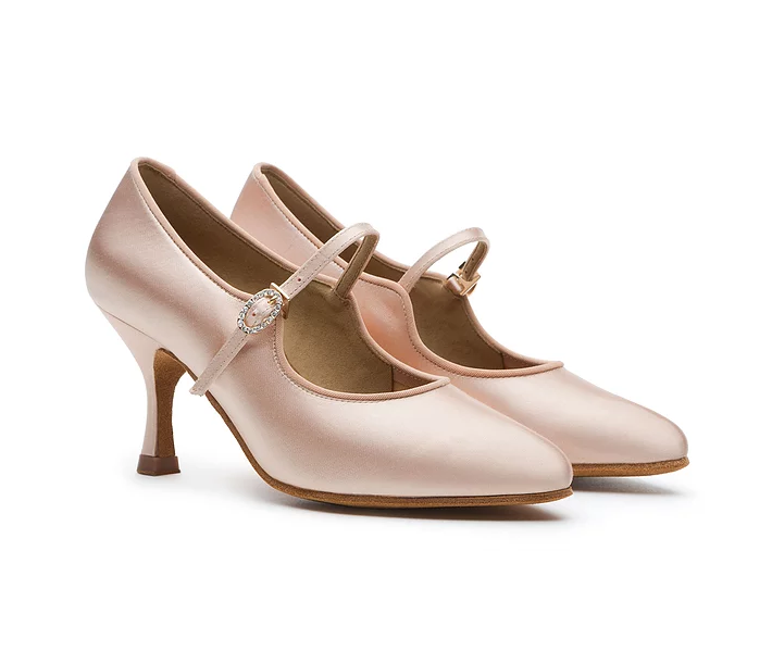 Diese Schuhe wurden für Tänzer entworfen, die sowohl Wert auf Stil als auch auf Komfort legen. Sie verfügen über einen sicheren, verstellbaren Mary-Jane-Riemen mit einem eleganten Schnallendetail. Der robuste Absatz bietet genau die richtige Höhe für eine schöne Beinlinie, ohne Kompromisse bei der Stabilität einzugehen. Diese Schuhe sind ideal für Standardtänze und sorgen dafür, dass Sie aus jedem Blickwinkel tadellos aussehen und sich auch so fühlen.