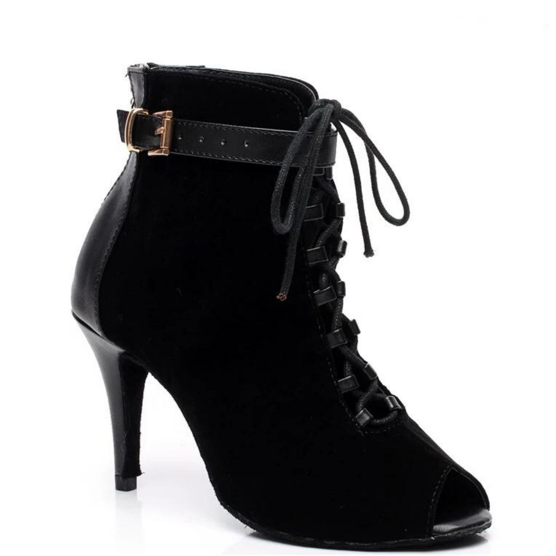 Die Absatzhöhe von 8,5 cm ist für Tänzer konzipiert und bietet Ihnen die nötige Höhe für Haltung und Gleichgewicht, ohne Kompromisse beim Komfort einzugehen. Ein sicherer Riemen sorgt dafür, dass die Stiefeletten eng anliegen, egal ob Sie einen schwülen Tango oder einen kraftvollen Paso Doble tanzen. Der Reißverschluss auf der Rückseite ermöglicht einfaches An- und Ausziehen und macht sie so praktisch wie unwiderstehlich.