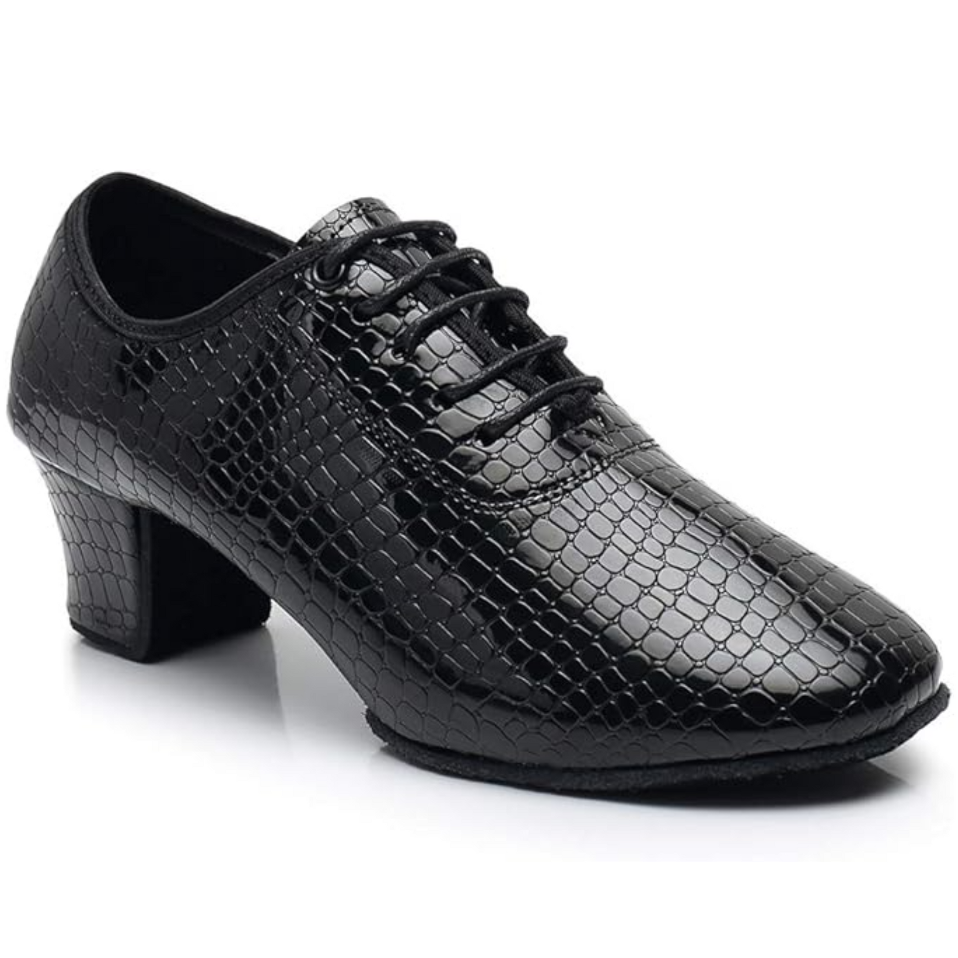 Die Übungstanzschuhe Modell 427 kombinieren funktionales Design mit einem Hauch von Eleganz und sind perfekt für Tänzer, die mit Stil üben möchten. Diese Schnürschuhe mit ihrem unverwechselbaren schwarzen Finish mit Krokodilprägung bieten einen anspruchsvollen Look und gleichzeitig den Halt und Komfort, den Sie beim Üben benötigen.
