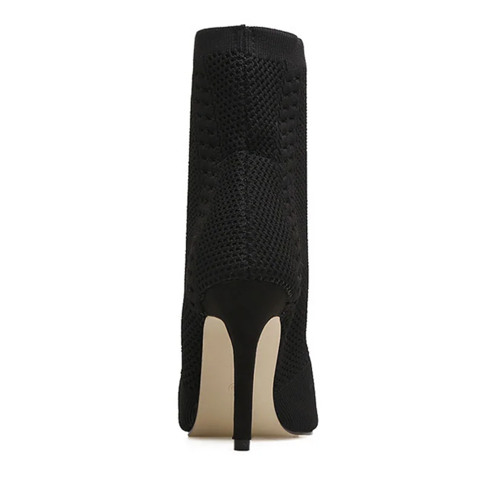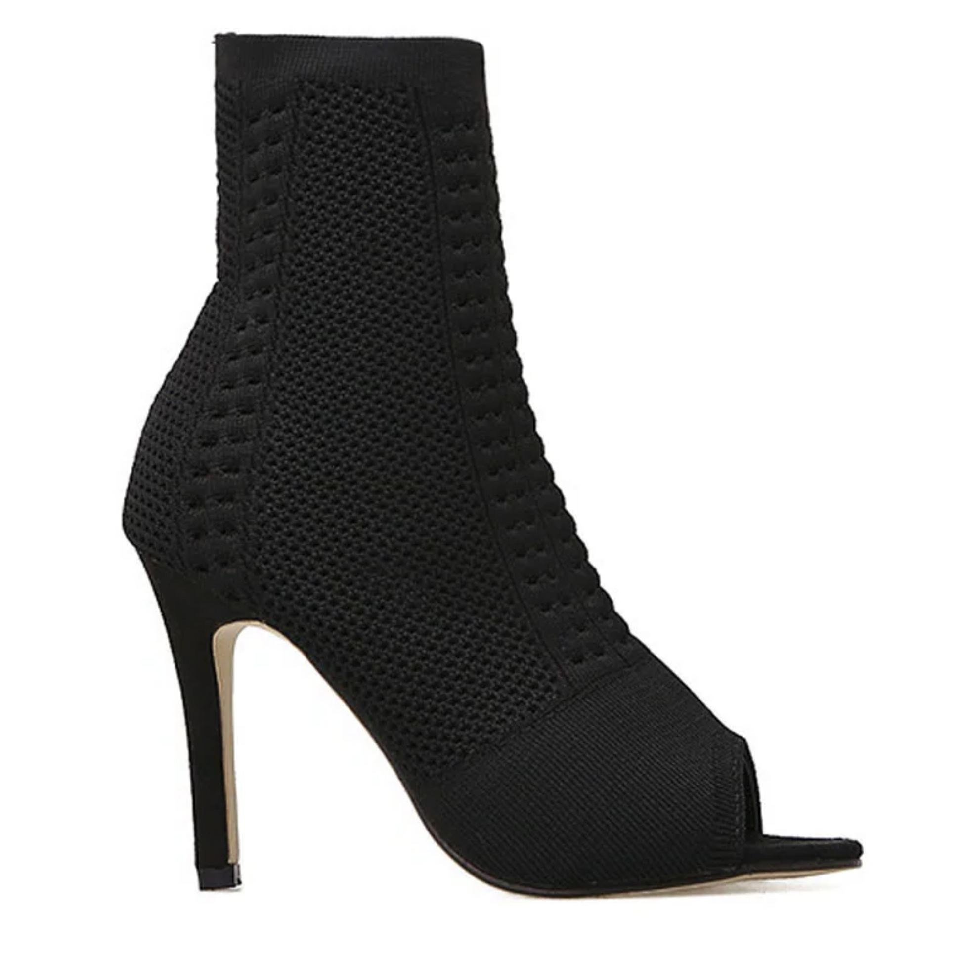 Entdecken Sie eine Mischung aus Eleganz und modernem Stil mit unseren schicken Peep-Toe-Booties Modell 505 aus Strick. Diese Stiefeletten mit Absatz sind ein echtes Modestatement mit einem funktionalen Twist und wurden für die stilbewusste, vielbeschäftigte Person entworfen. Der schwarze Strickstoff passt sich Ihren Füßen an und sorgt für eine atmungsaktive und bequeme Passform, während das Peep-Toe-Design für einen Hauch von Verführung sorgt.