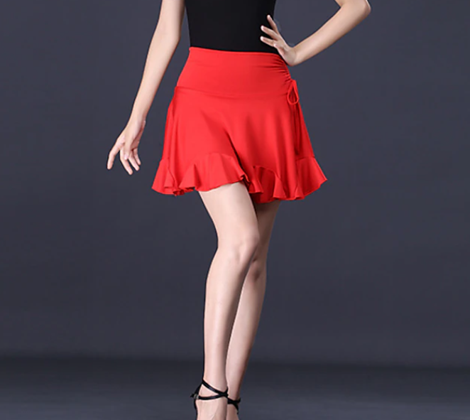 Die kaskadierenden Rüschen verleihen Ihren Bewegungen einen dynamischen Fluss und machen ihn perfekt für lateinamerikanischen Tanz, Salsa oder Gesellschaftstanz. Mit einem Kordelzug an der Seite für eine anpassbare Passform ist dieser Rock sowohl funktional als auch schmeichelhaft für Tänzer aller Größen. Der Rhythmic Ruffle Dance Rock ist in klassischem Schwarz und leuchtendem Rot erhältlich und ist damit eine vielseitige Ergänzung Ihrer Tanzgarderobe.