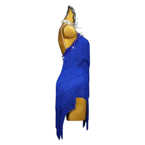 Designed to shine with every movement. This Royal Blue Latin Dance Fringe Dress is a striking competition and performance piece, created to enhance rhythm, expression, and stage presence.