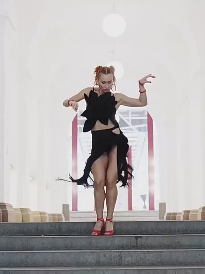 - Latin half-skirt with flowing fringe detail