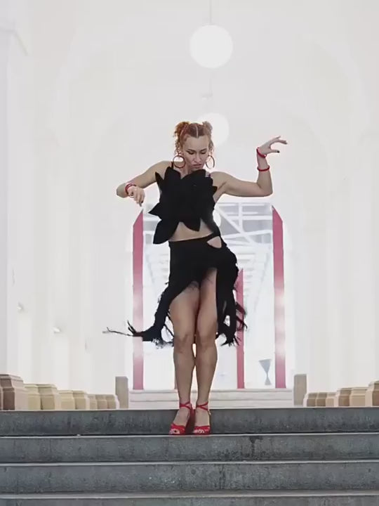 UDance A69 is a high-performance Latin half-skirt designed for expressive stage movement and intensive training. Featuring fluid fringe and a sculpted silhouette, it delivers dynamic motion with strong stretch support.
