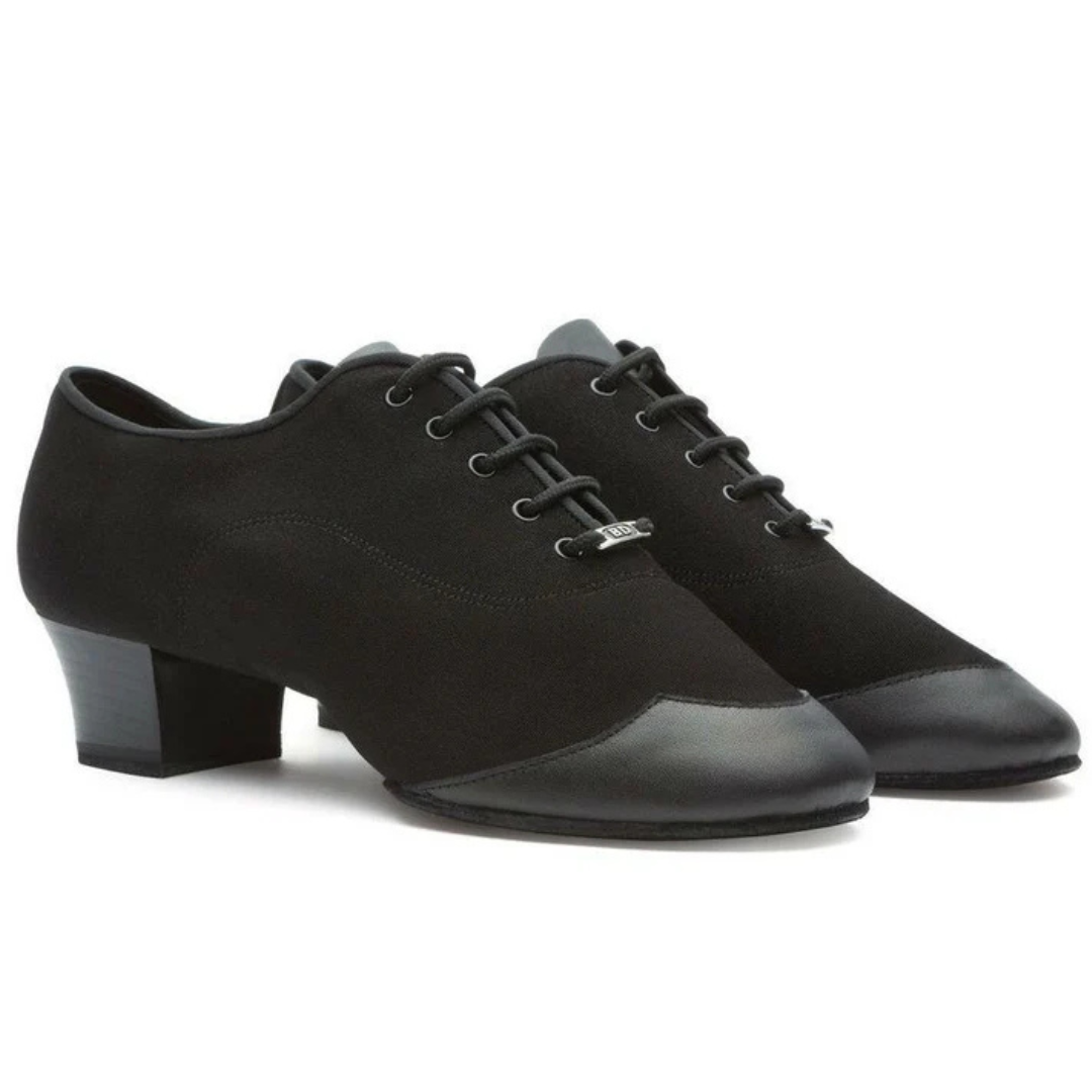 Enhance your dance experience with the BD Dance Latin Men's Shoes, Model 457. These shoes are meticulously crafted for male dancers who seek both elegance and performance. Featuring a popular combination of black leather and black canvas, the Model 457 offers a sleek, professional look that protects the inside of the foot and promotes smoother movement on the dance floor.