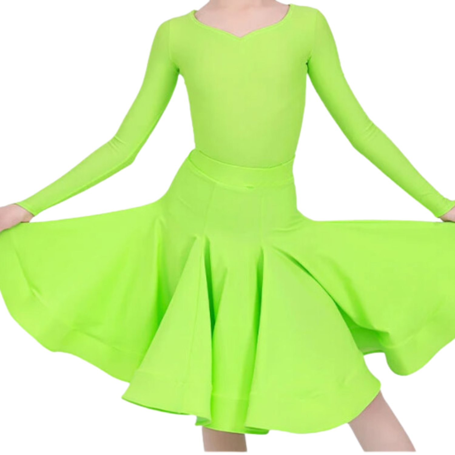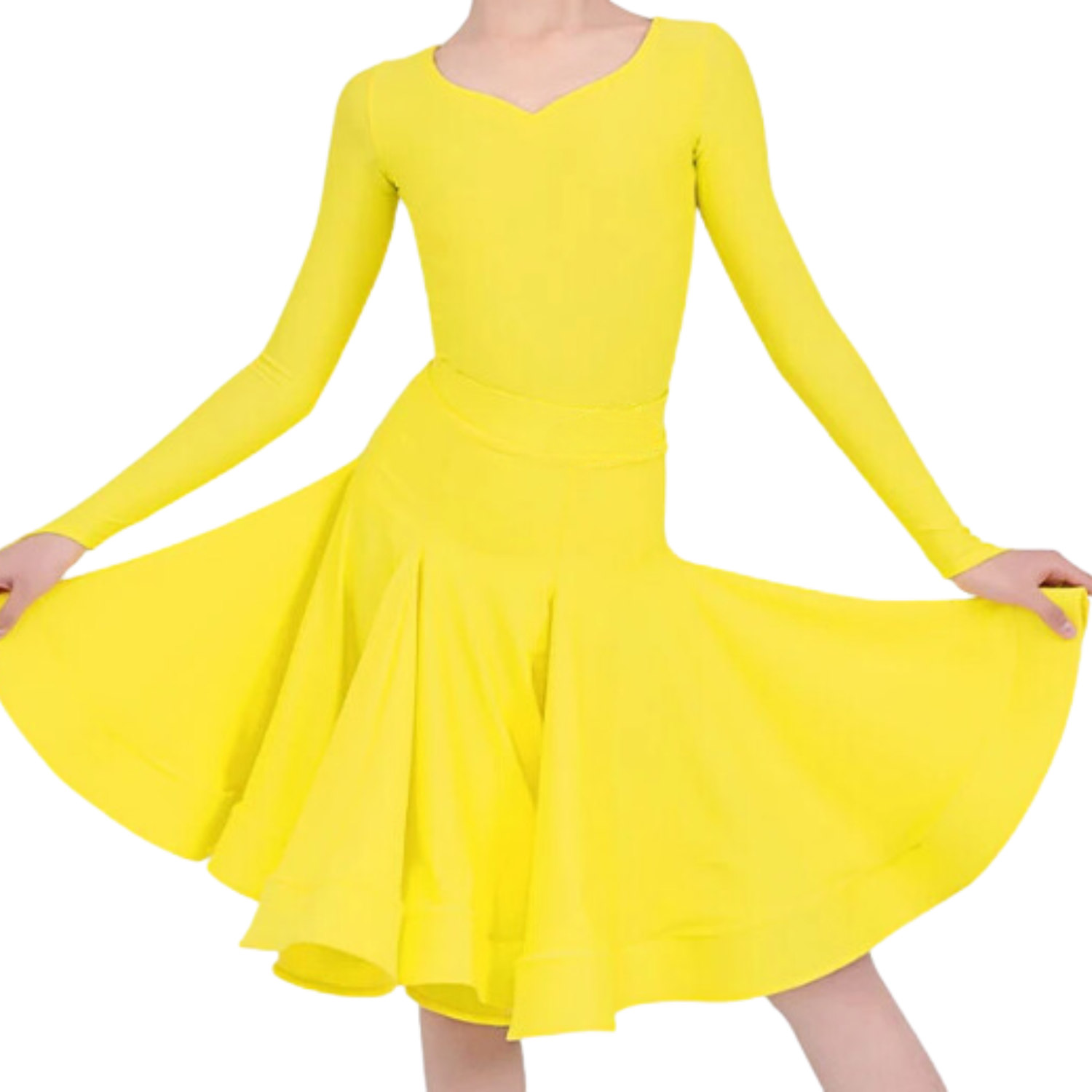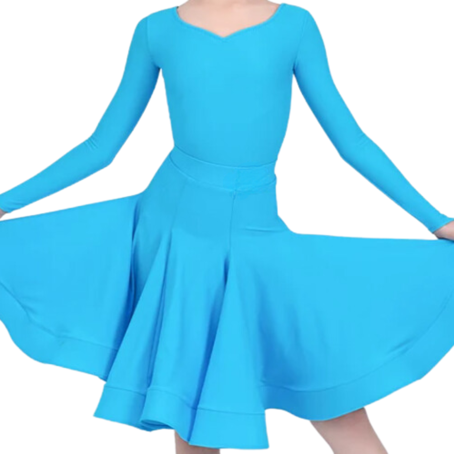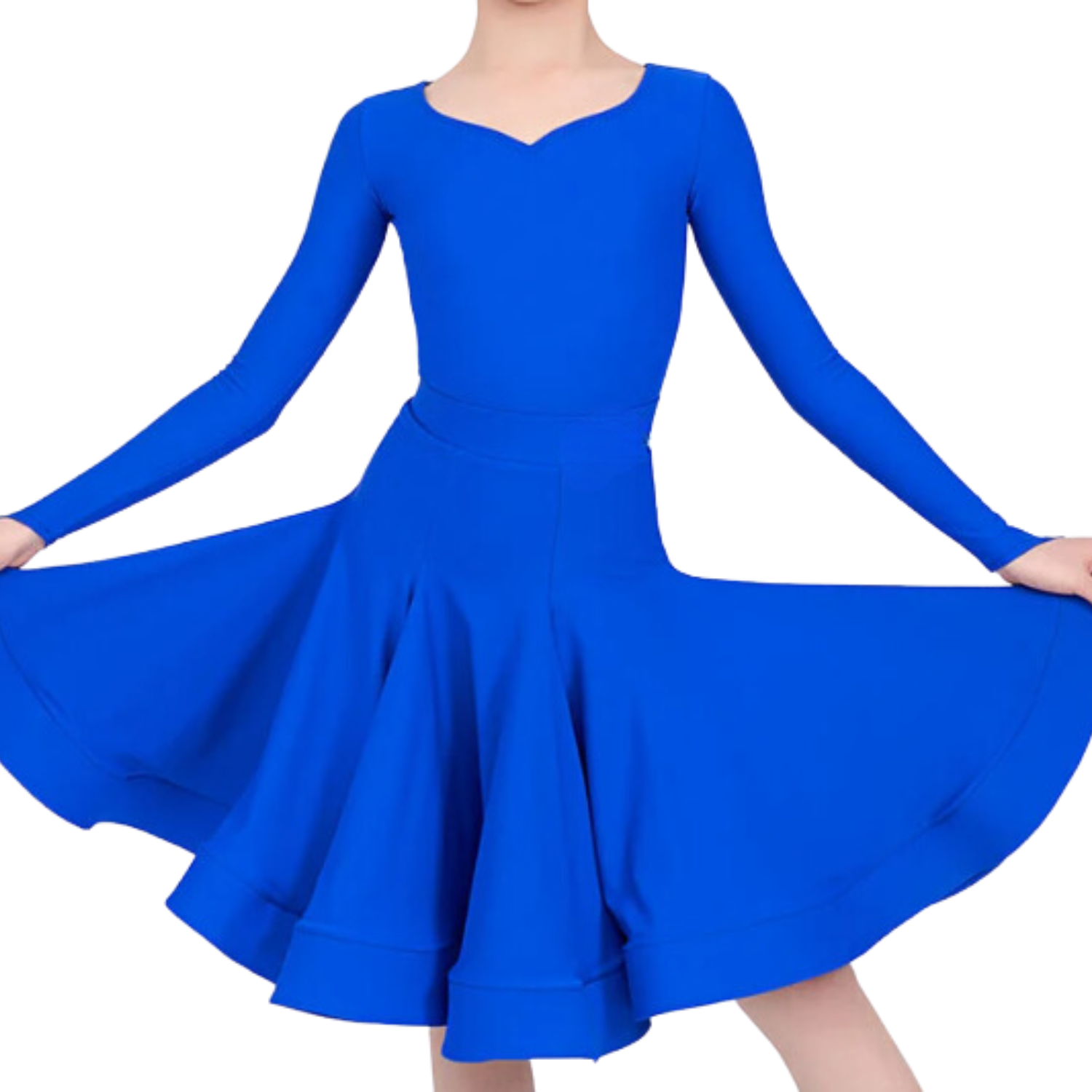The Model 104 Kids' Long Sleeve Dance Dress is designed to provide elegance and comfort for young dancers. This sleek dress features a fitted bodice and a flared skirt, offering graceful movement and visual allure on the dance floor. Crafted with high-quality materials, this dress ensures comfort and durability, making it perfect for various dance routines.
