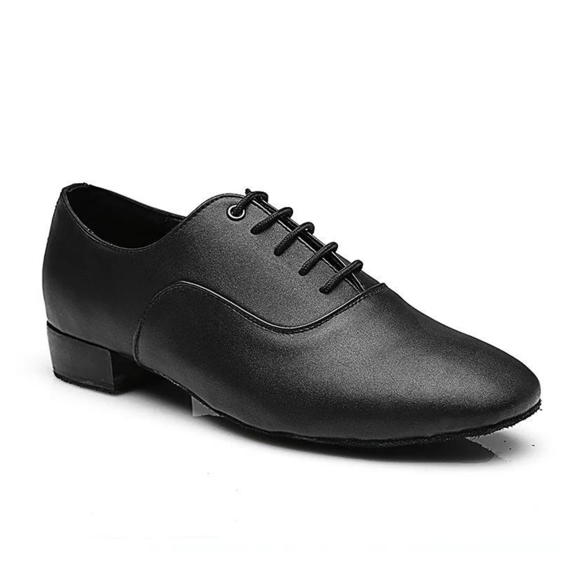 Introducing our Suave Steps Men's Ballroom Dance Shoes, Model 202, the quintessence of both sophistication and performance. Tailored for the ballroom enthusiast, these shoes blend sleek design with practicality, featuring a supple black leather exterior and a low block heel that provides stability for all your dance moves.