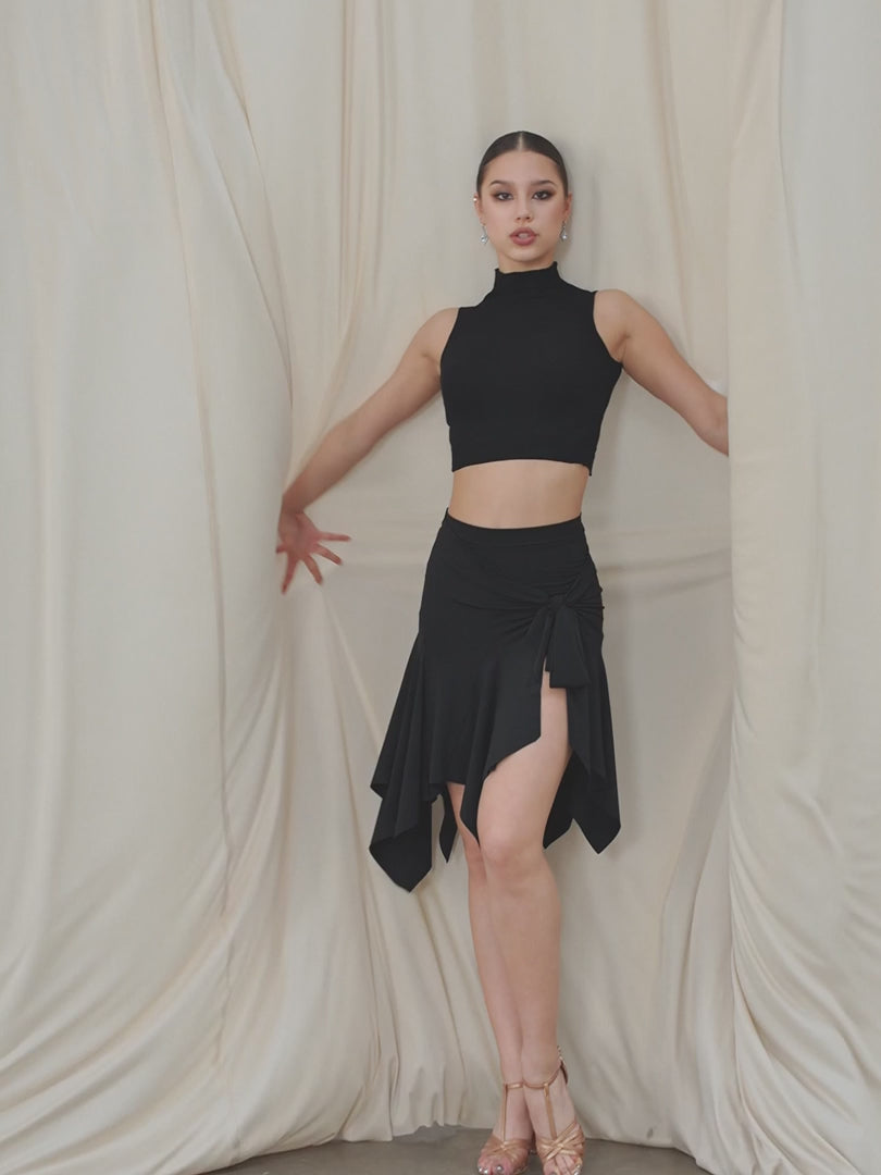 Graceful design with a modern edge. The UDance A21 Women’s Latin Dance Top is an elegant, sleeveless piece designed for confident movement. Its mock neck and open-back design flatter the dancer’s lines while the soft stretch viscose fabric ensures comfort and breathability during long training or performances.