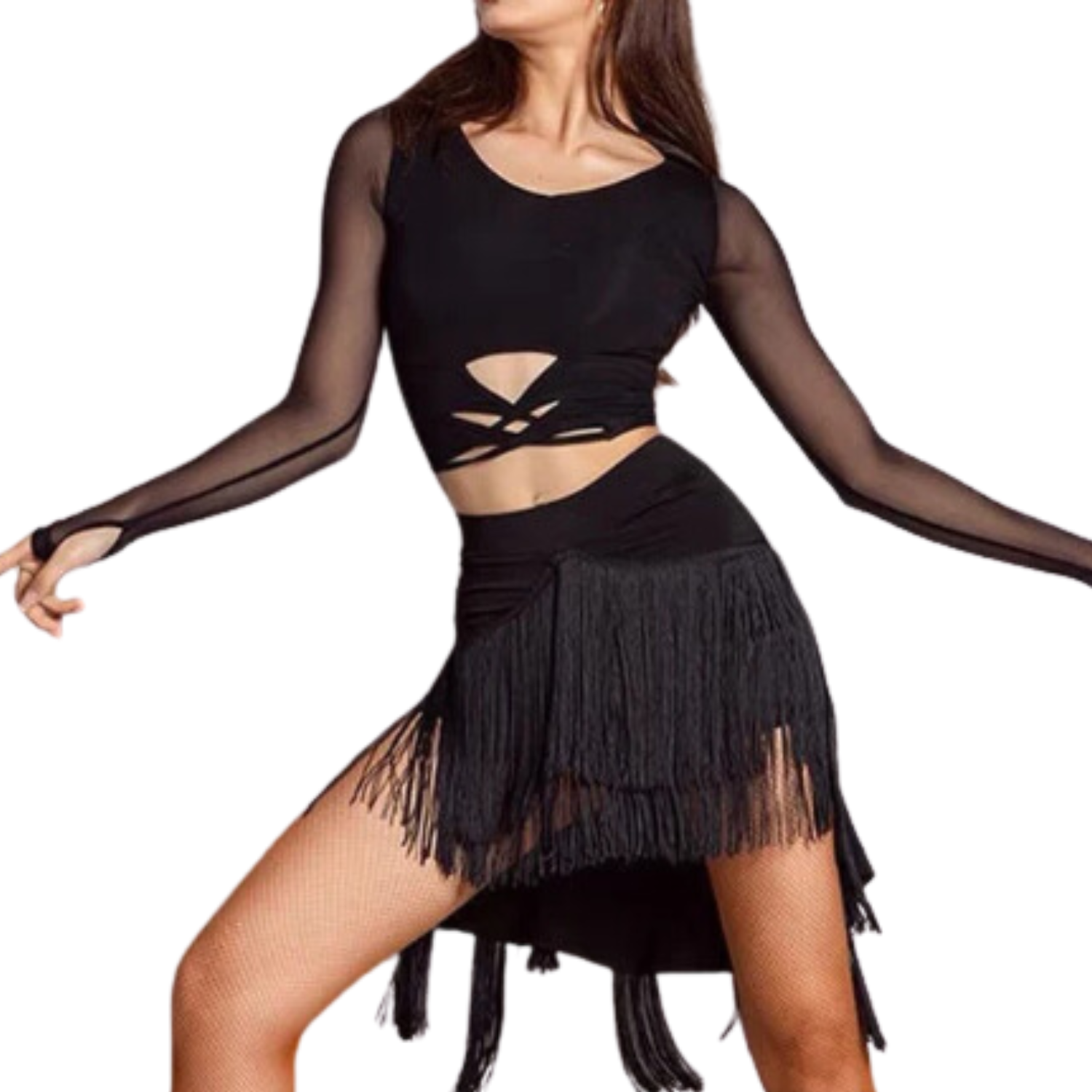 Its fitted waist provides a secure fit, and the fringe detail offers additional style and versatility, making it ideal for various dance styles, including Latin, ballroom, and contemporary.