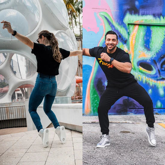 Shine on the dance floor with the Fuego Silver High-Top Dance Sneakers. These sneakers combine bold style with high-performance features, making them ideal for dancers who want to stand out while enjoying optimal support and comfort.