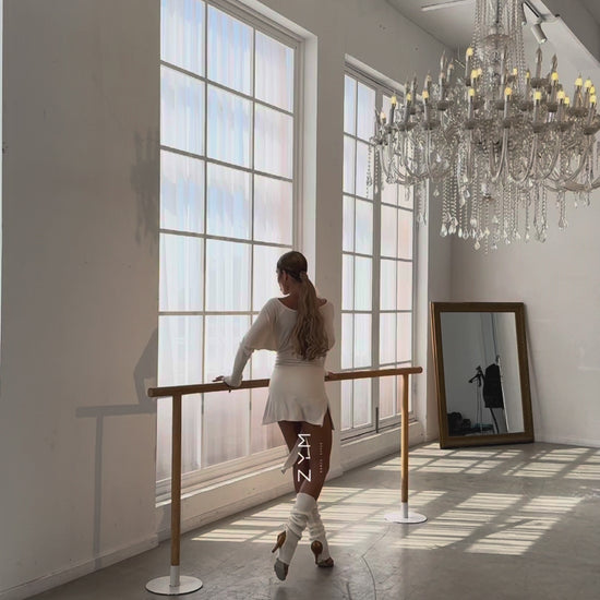 Perfect for warm-ups, rehearsals, and relaxed practice sessions. The soft drape allows full movement while maintaining a refined silhouette. Pair with the WOW Spliced Stockings or a fitted dance bodysuit for a balanced training look.