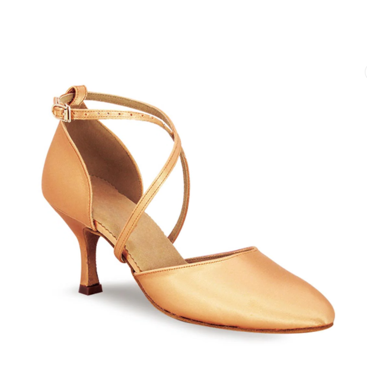 Glide gracefully across the dance floor with the BD Dance Standard 103 Satin Ballroom Heels. These elegant shoes are designed for the classic dancer, featuring a soft tan satin upper that exudes luxury and simplicity. The sleek closed-toe design offers a polished look, while the cross-over straps provide both style and stability.