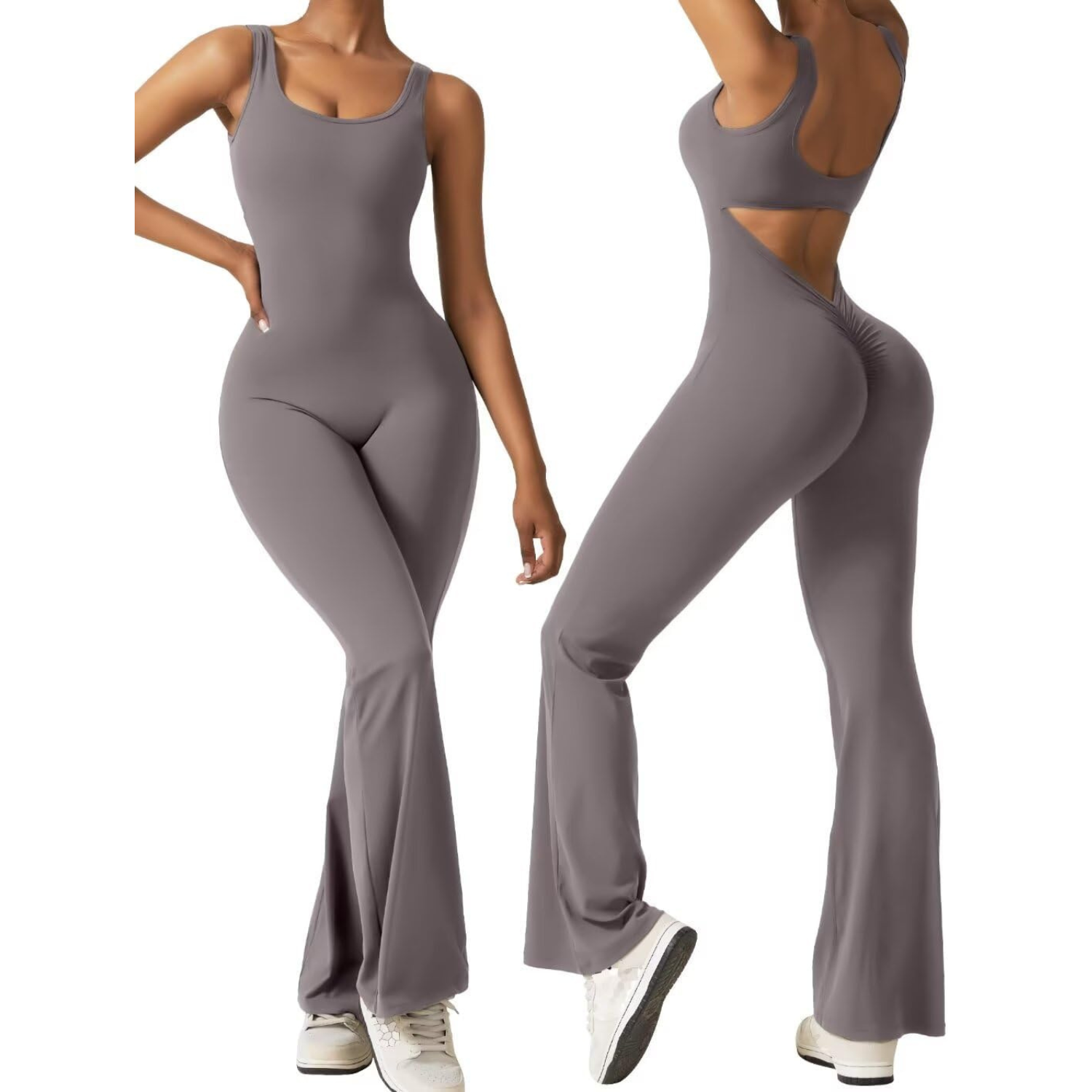 Elevate your activewear game with this statement-making halter jumpsuit featuring a flared leg design and open back cut. Designed for maximum breathability and flexibility, this one-piece hugs the body with ultra-comfy, stretchy fabric and includes removable pads for added support. The V-waist design sculpts the silhouette, while the wide-leg cut enhances freedom of movement during yoga, gym sessions, or casual outings. Stylish enough for streetwear, functional enough for your toughest workouts.