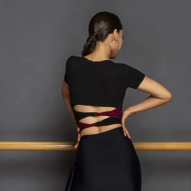 This top is crafted from a breathable, stretch-infused fabric that contours to your movements, ensuring both comfort and support during any routine. With its short sleeves, you get coverage and ease, perfect for a range of styles from Latin to contemporary dance.