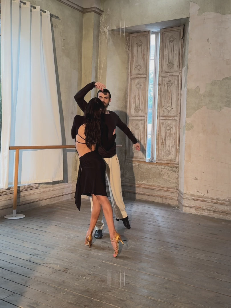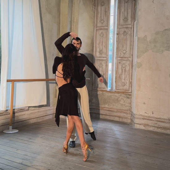Irresistibly stunning and elegant, the ZYM Jet-Black Skirt #24091 is designed to captivate both on and off the dance floor. Featuring an asymmetrical hem and custom diamond mesh trim, this skirt blends sophistication with movement.