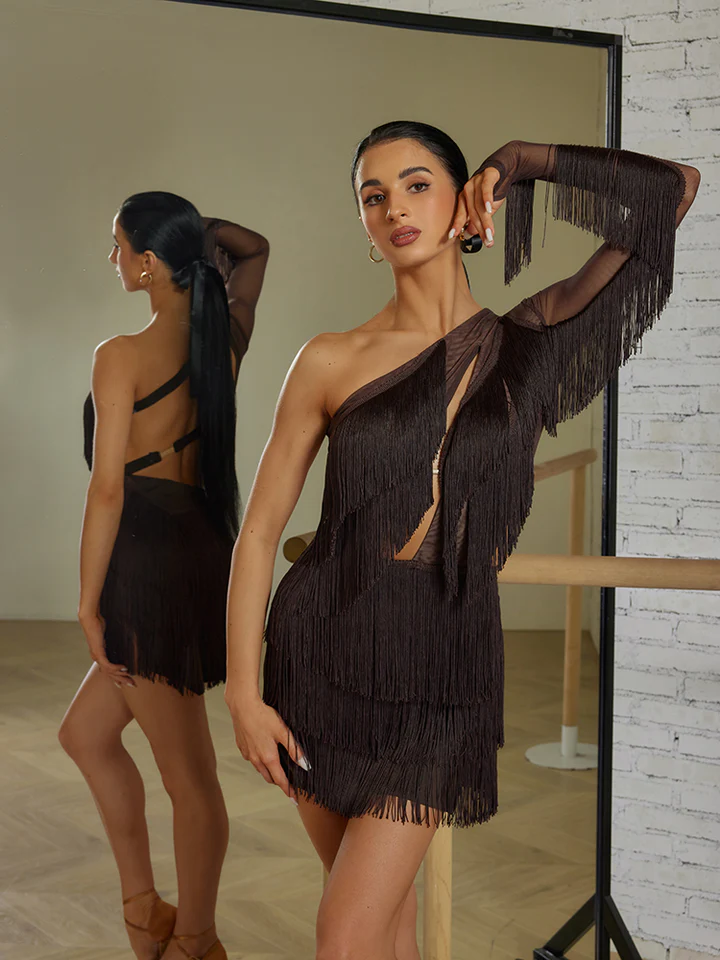 With built-in underwear and a snap closure for added security, along with an integrated bra for support, this dress is as practical as it is stunning. The stretchy mesh fabric accommodates your movements, allowing you to perform with both freedom and finesse. Whether it's a competition, performance, or social dance, the Swana Fringe Dress is your partner in showcasing the power and grace inherent in Latin dance.