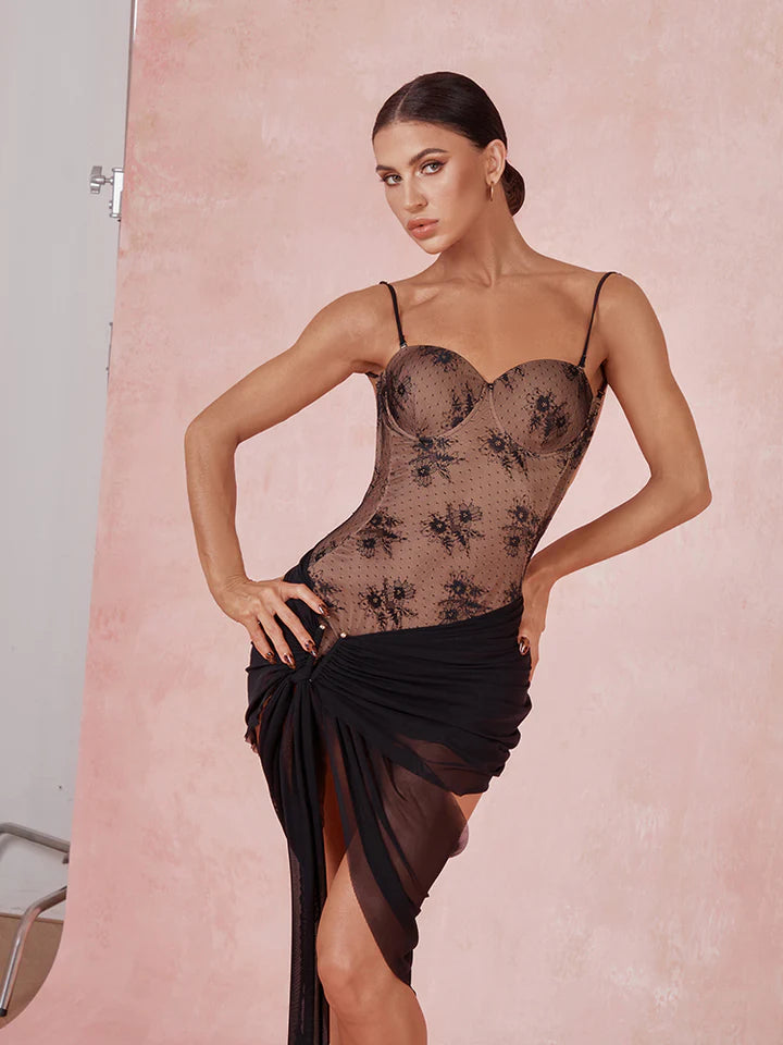Timeless elegance with a daring twist. The ZYM Lace Bodysuit #2441 combines vintage jacquard mesh with a skin-tone lining for a refined yet bold silhouette. With its open back and waist-accentuating fit, this bodysuit is perfect for both dancewear and stylish everyday looks.